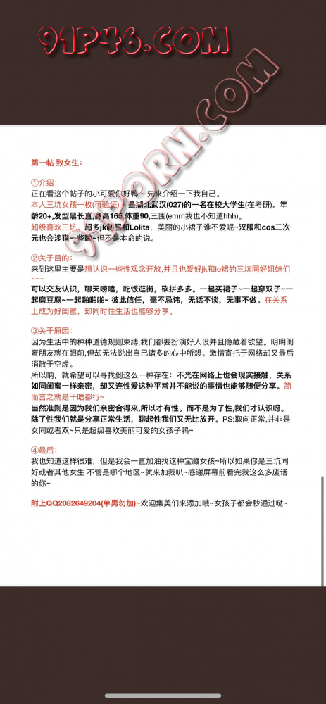 武汉JK/lo娘在校女生的亲笔贴~找三坑姐妹和武汉情侣交友 发帖